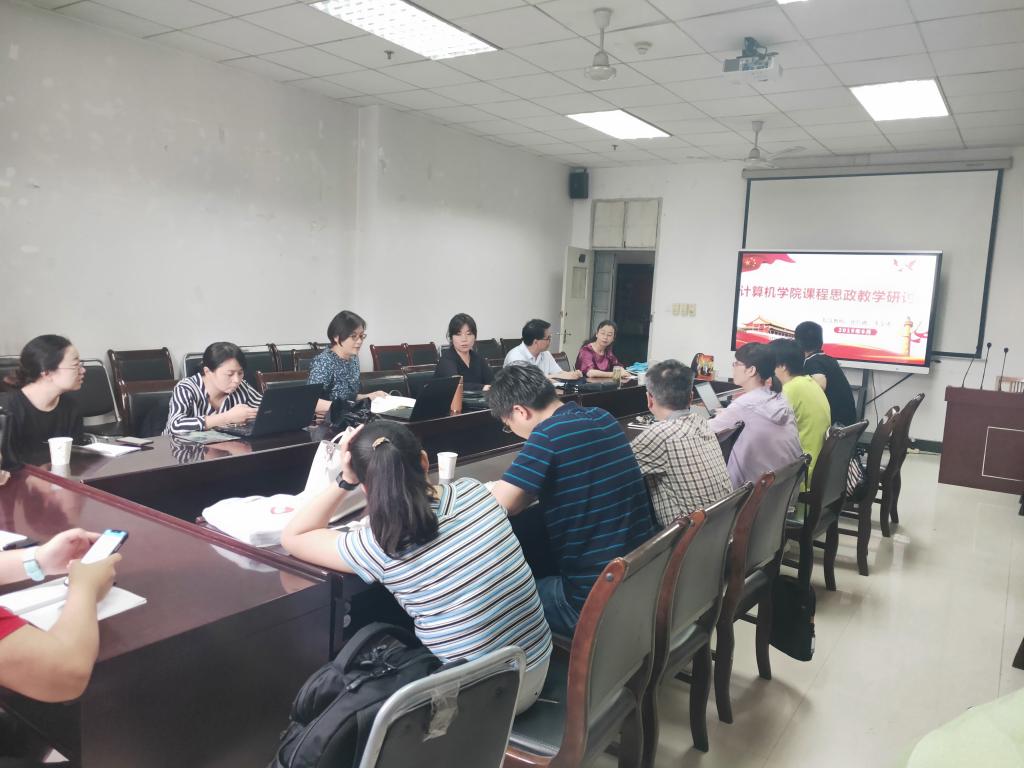 6月19日下午,计算机公司在雁塔校区北院会议室举办课程思政教学研讨会。会议邀请马克思主义公司孙红湘和李金勇两位教授,为公司准备参加“思政大练兵”的老师进行指导,计算机公司负责人,参加“思政大练兵”的老师参加研讨会。