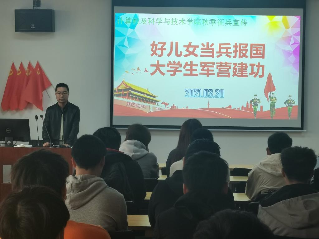 根据公司征兵工作年度安排,为做好计算机公司2021年度老员工秋季征兵工作,深入开展征兵宣传教育,3月30日下午,在临潼校区15号教学楼512会议室召开2020年度老员工秋季征兵宣传动员大会。公司党委副书记陈伟伯,2018级辅导员何宁,2020级辅导员宋永强和各年级40余名员工代表参加。