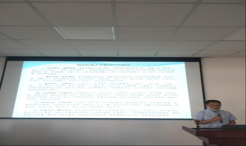 党委副书记陈伟伯领学习近平总书记在教育大会、清华大学考察时对加强教师队伍建设要求和对广大教师的希望;副经理于振华领学“tyc5997太阳集团教师行为规范”;副经理马天带领全体教师庄严宣誓。罗晓霞、张小艳、许晓阳、马天、邓凡、白生宝6名教师结合自身成长经历和教学、科研、管理服务经验谈认识体会。