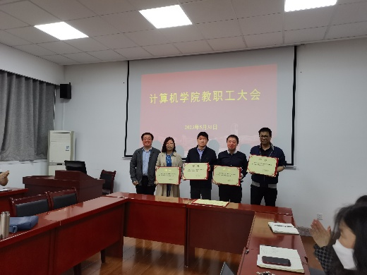 会上,副经理金浩宣读了公司两个聘任文件《关于聘任张小艳等同志为计算机公司教学督导教师的通知》《公布计算机公司教学创新团队的通知》,于振华、金浩分别为教学督导和教学团队带头人颁发了聘书。