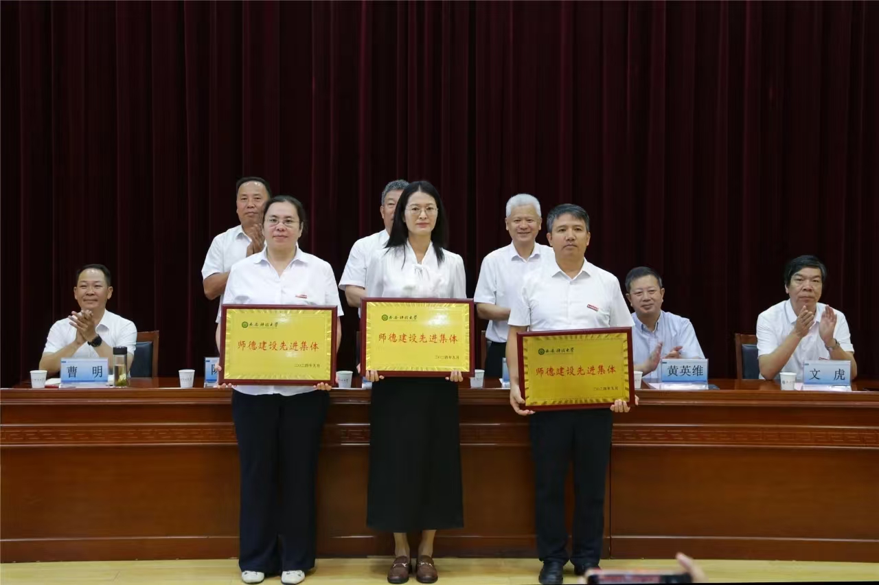 大会对2024年度师德建设先进集体、师德先进个人、优秀教师及全国、全省荣誉奖项获得者进行了表彰。公司智能软件工程教学团队荣获“师德建设先进集体”荣誉称号,董立红教授荣获“师德先进个人”荣誉称号。陕西省高校教师教学创新大赛二等奖获得者冯健副教授受到大会表彰。