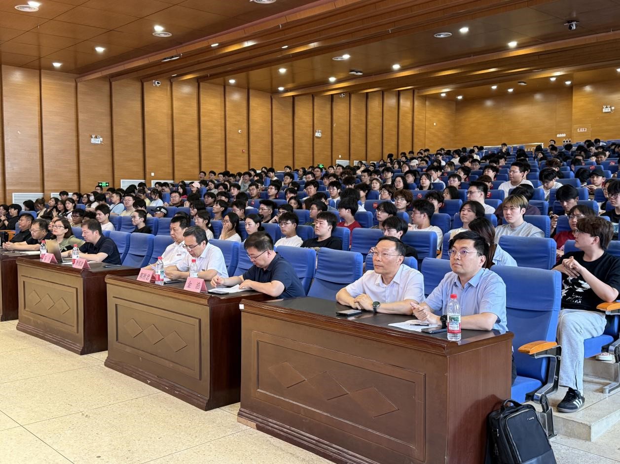5月28日中午,tyc5997太阳集团在临潼校区骊山校园煤炭科技楼一楼报告厅召开考研就业动员大会。公司领导班子成员、各系部主任、支部书记、全体学工干部,2025届受表彰员工代表,2026届全体本科生共500余人参加大会。本次会议特邀能源公司与安全公司教师代表出席会议并结合专业交叉融合进行考研就业宣讲。