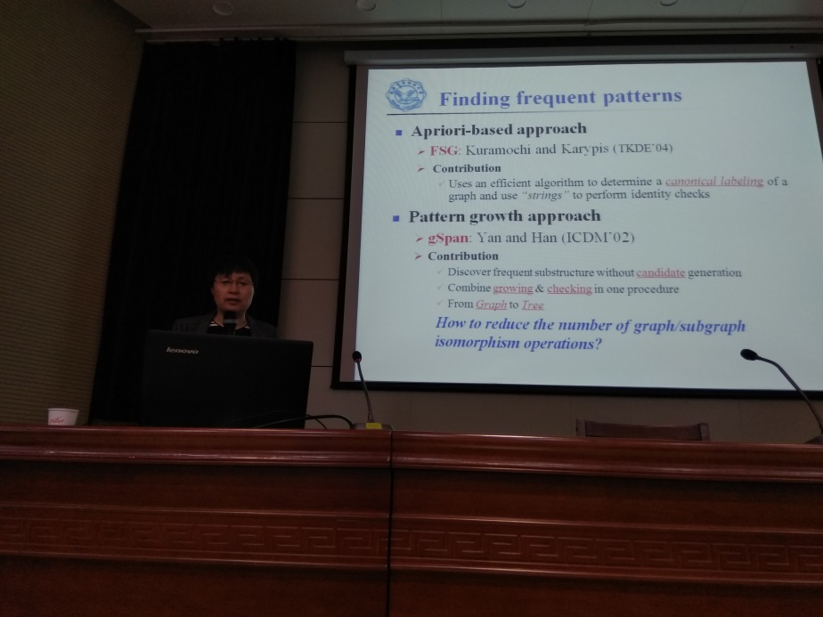 2018年4月25日,西安电子科技大学高琳教授应邀做客公司“胡杨林大讲堂”,作了题为《基于图的生物数据模式挖掘》的学术报告。报告会由研究生院主办,计算机科学与技术公司承办,计算机公司副经理马天主持,全校150余名研究生及教师聆听了报告。