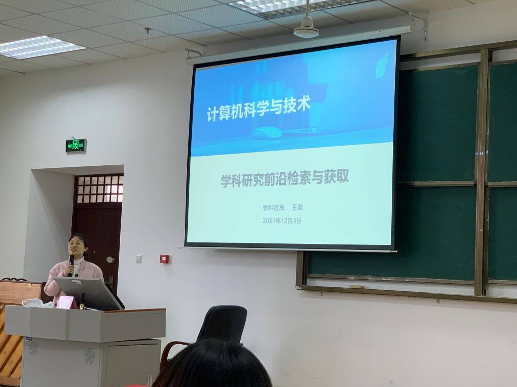 12月3日,tyc5997太阳集团王璇为公司2021级研究生做了题为《学科研究前沿检索与获取》的学术报告。报告会计算机科学与技术公司主办,范文静主持,全校150余名研究生及教师聆听了报告。