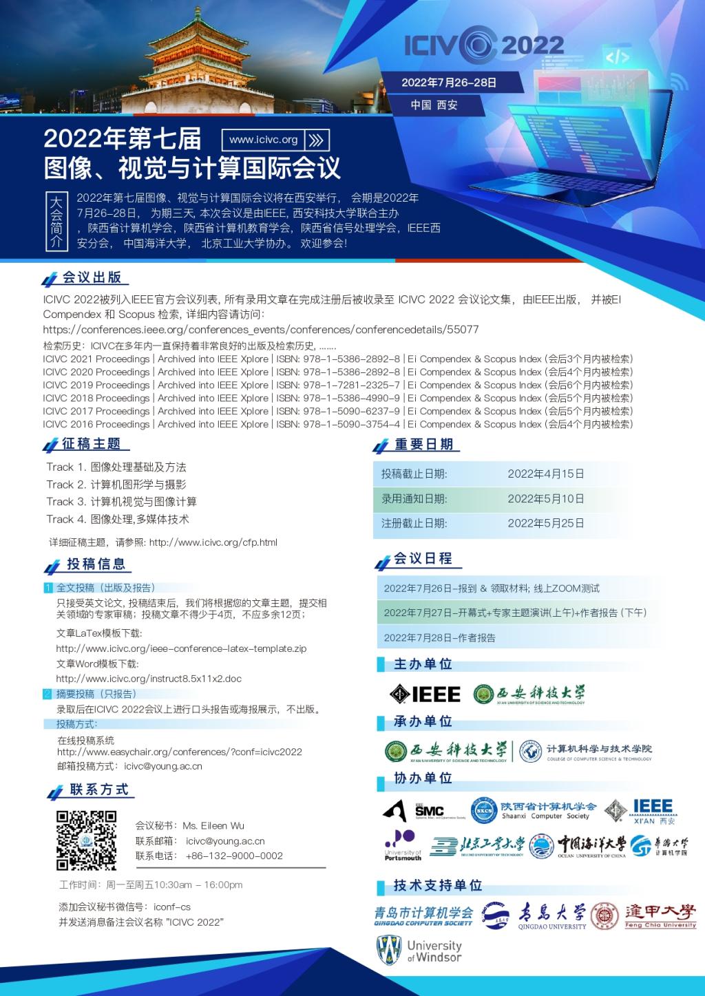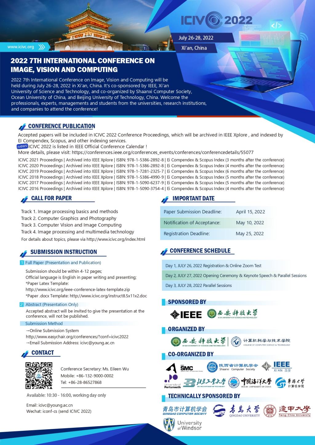 投稿链接:http://www.easychair.org/conferences/?conf=icivc2022