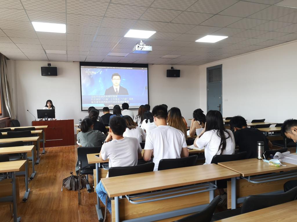 紧接着,支部书记领学“习近平总书记来陕考察重要讲话精神”并集体观看《做好“六稳”落实“六保”全面建成小康社会——习近平总书记陕西考察重要讲话在各地干部群众中引发强烈反响》、《习近平在陕西考察时强调 扎实做好“六稳”工作落实“六保”任务 奋力谱写陕西新时代追赶超越新篇章》等视频,其中支部党员轩晓景、袁炜轩、马博等同志踊跃发言。