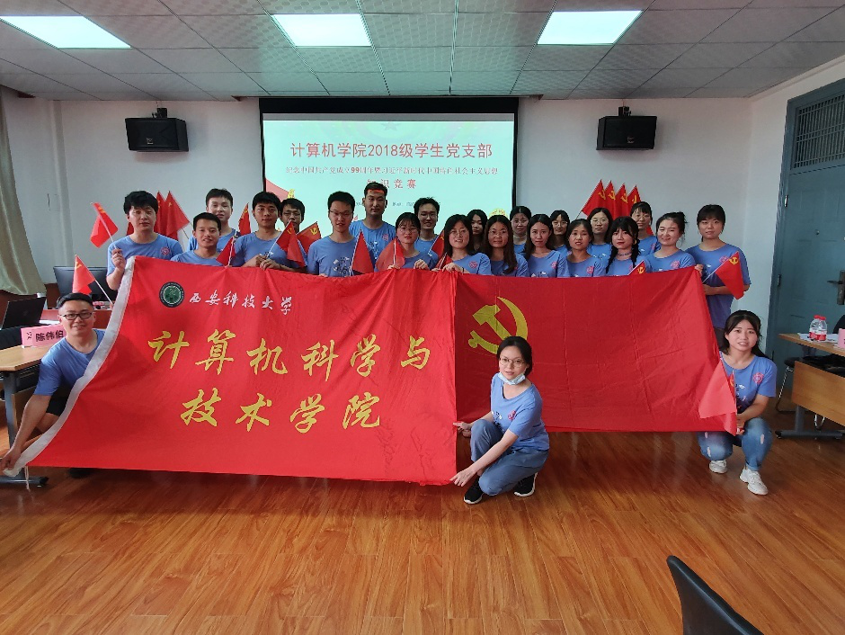 2020年是中国共产党成立99周年,为隆重庆祝党的华诞,铭记党的历史,充分展示员工党员的爱国主义热情以及昂扬的精神面貌,7月1日,计算机科学与技术公司2018级员工党支部在临潼校区15教512室开展庆祝建党99周年知识竞赛活动,活动由2018级员工党支部书记李宇绒主持,计算机公司党委书记冯爱玲、副书记陈伟伯、副经理马天及2018级员工党支部全体党员参加此次活动。