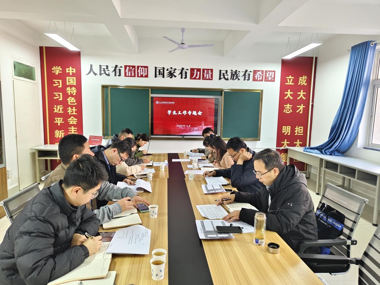 会上,各专项工作负责人依据员工工作考核办法,围绕思想政治教育与员工党团建设、员工日常管理、员工指导与服务、员工学业成果、队伍建设等方面对本年度的员工工作进行梳理总结,对下一步工作计划进行说明;毕业班辅导员围绕毕业生就业、考研工作近期开展情况及下一步举措进行汇报;新生辅导员就朋辈班主任选拔、晚自习、上课考勤、基础课程模拟考试与答疑、家校沟通等方面进行汇报;郭胜忠对审核评估整改验收工作与员工相关部分进行任务分解。