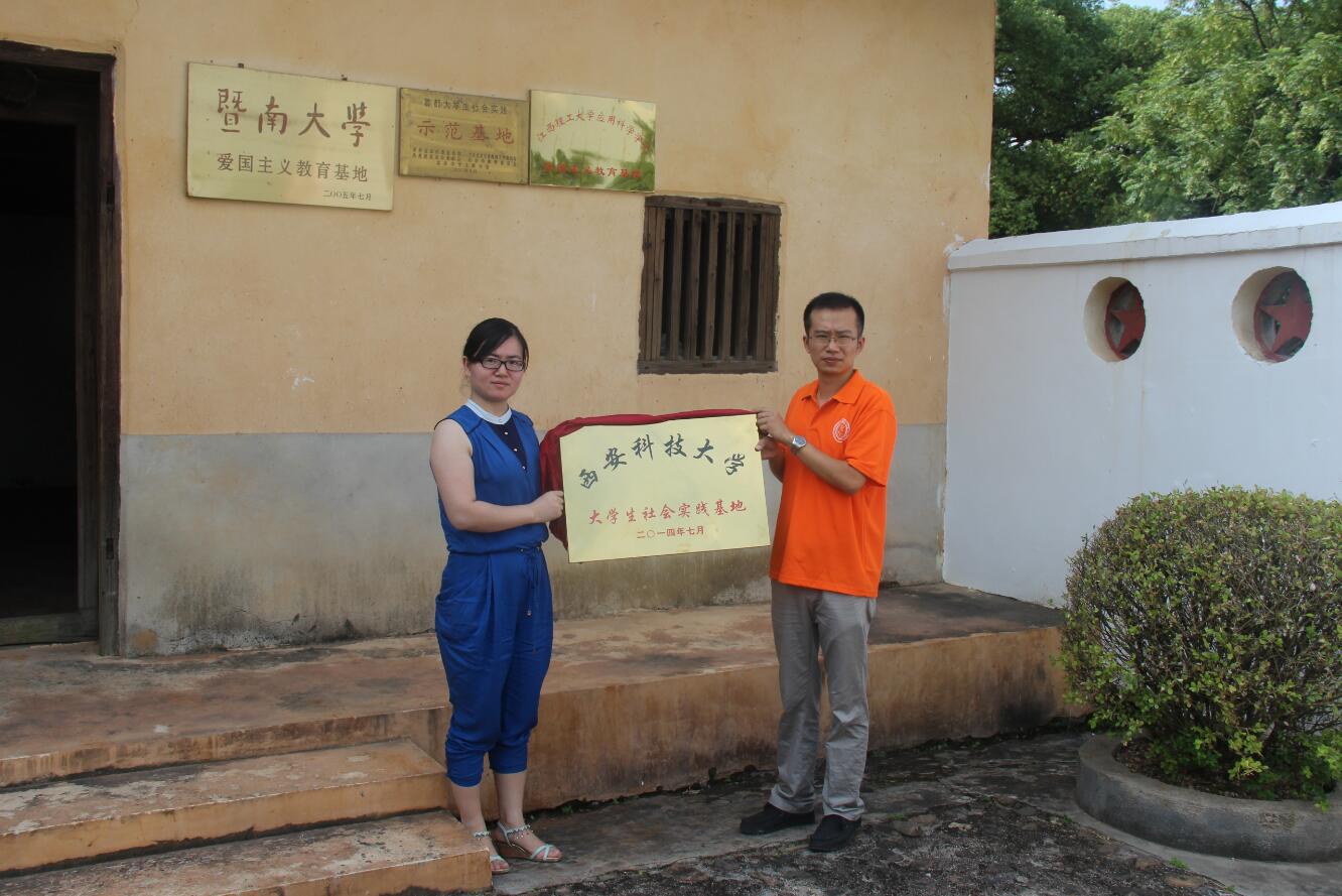 7月16日,实践队成员在瑞金市团市委书记阮玉的陪同下到达中国共产主义青年团(少共)中央局旧址举行tyc5997太阳集团老员工社会实践基地揭牌仪式,瑞金市团市委书记阮玉、tyc5997太阳集团计算机公司团委书记马继刚、通信公司团委书记郝卿、计算机公司教师胡军卫参加揭牌仪式。首先,瑞金市团市委阮书记和tyc5997太阳集团马继刚老师为实践基地正式揭牌。揭牌仪式结束后,阮书记与tyc5997太阳集团师生就团史和瑞金红色文化进行了深刻交流。阮书记希望实践队成员传承红色文化,在实践中进一步加深了解。随后一行参观了中央革命根据地共青团史料馆,主要对苏区共青团组织沿革、团的思想建设、团的中心任务、共产儿童团工作等进行了详细的了解,使得队员们深刻的认识到在那战火纷飞的年代中,团组织就像一轮光芒四射的的朝阳,照亮了苏区广大青年前进的道路,这将会时刻激励实践队成员们在以后学习工作中更加努力,牢记团的光辉使命,在实践中国梦的征程中,拼搏前进。最后在这种浓厚的红色氛围的影响下,全体学员在团中央旧址红旗下追溯团的历史举行了重温入团誓词仪式。